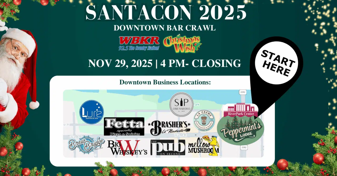 SantaCon returns for its second year in downtown Owensboro. This festive holiday bar crawl invites participants to dress in their best Santa attire and enjoy food, drinks, and holiday cheer at some of the city’s most popular downtown establishments.